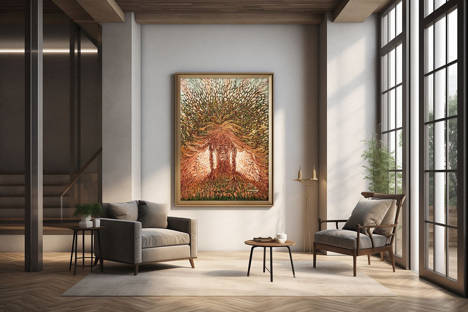 Obraz doskonale odnajdzie się w przestrzeniach, gdzie ważna jest harmonia i kontakt z naturą – w stylowych wnętrzach boho, gabinetach, salonach spa czy miejscach przeznaczonych do medytacji. Jego delikatna kolorystyka i fantazyjny charakter wprowadzają spokój, piękno i inspirację do każdego otoczenia.