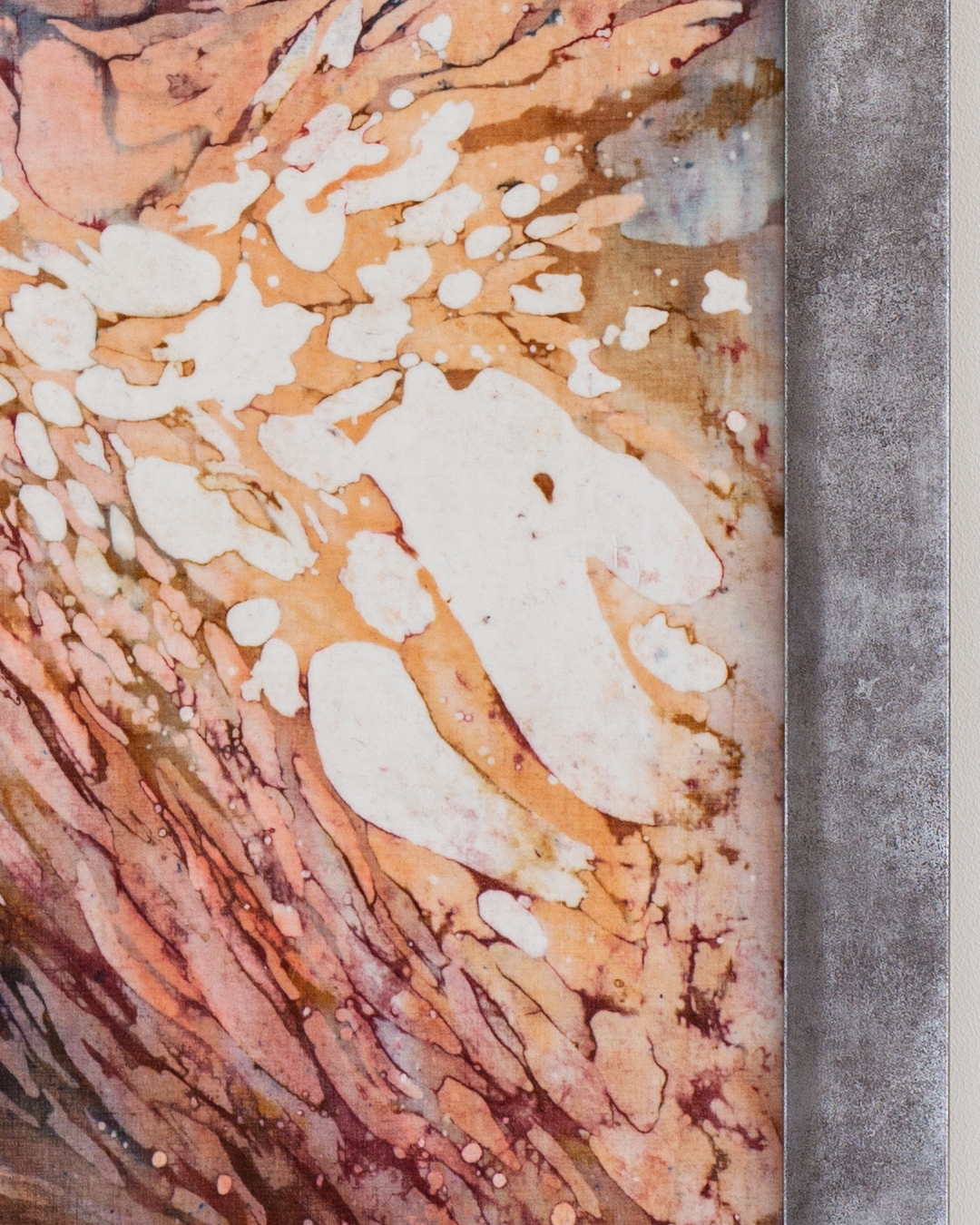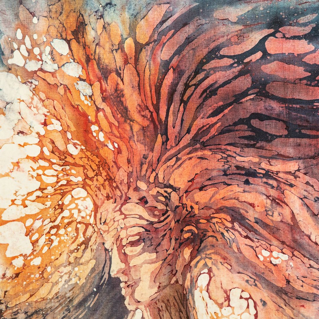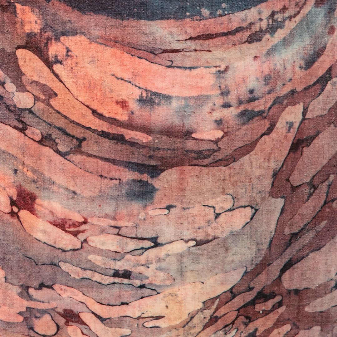 Kolorystyka — ciepłe odcienie pomarańczu, złota, purpury, fioletu i głębokiego indygo — wprowadza intensywność i emocjonalny charakter kompozycji. Obraz zdaje się opowiadać historię o mitycznej sile natury i jej związku z kobiecą esencją, zapraszając widza do snu pełnego tajemnic i legend.